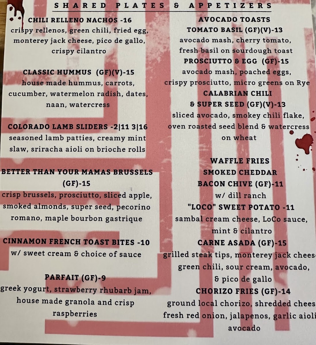For those seeking shareable bites or favorites, the Chili Relleno Nachos and Cinnamon French Toast Bites stand out as crowd favorites. If you're craving something a little more savory, the Prosciutto & Egg Avocado Toast and Tomato Basil Avocado Toast are perfect choices.
